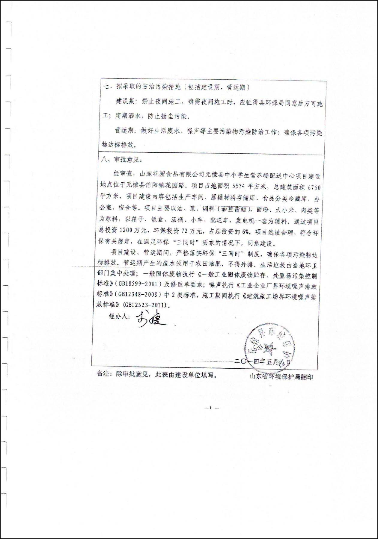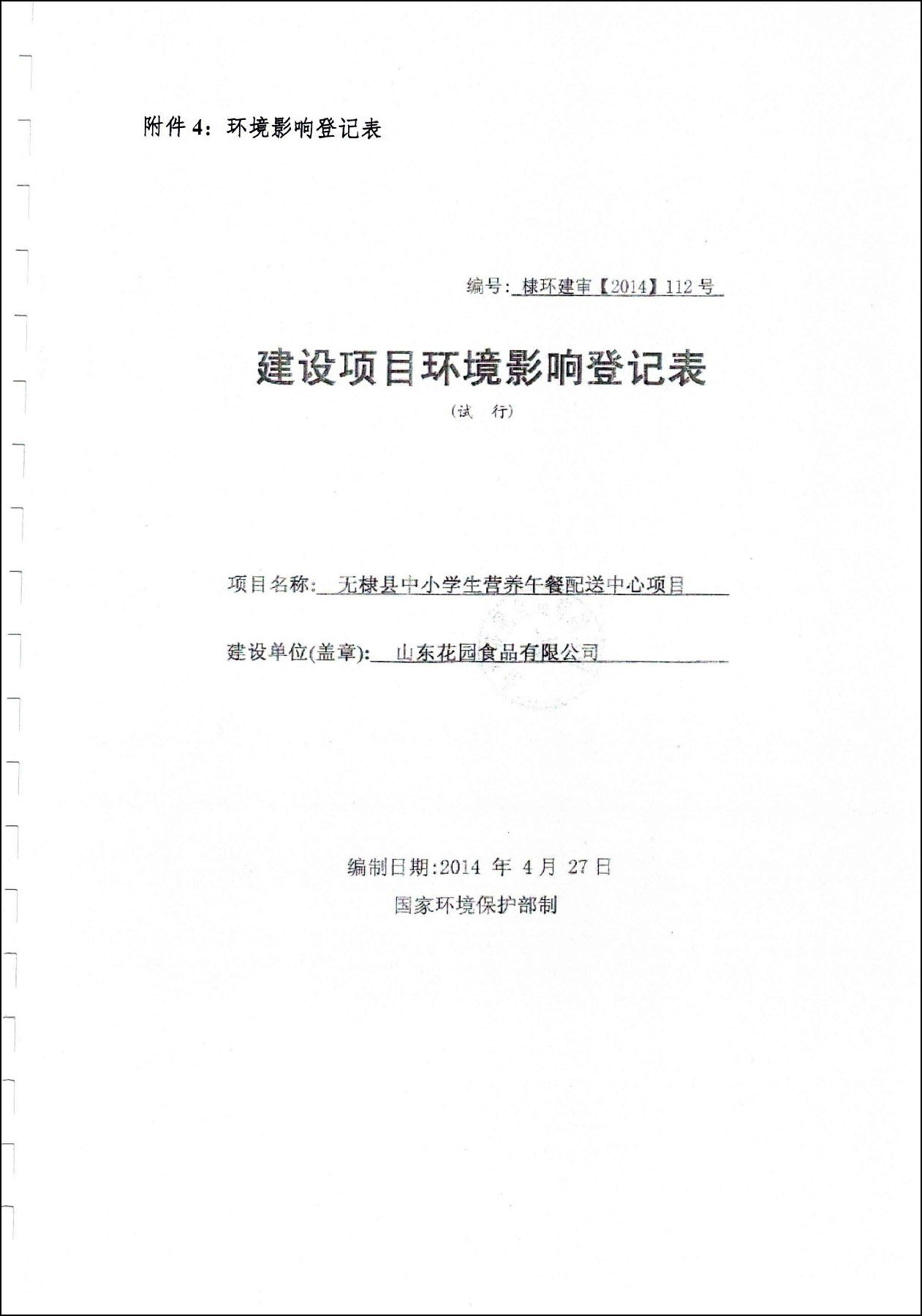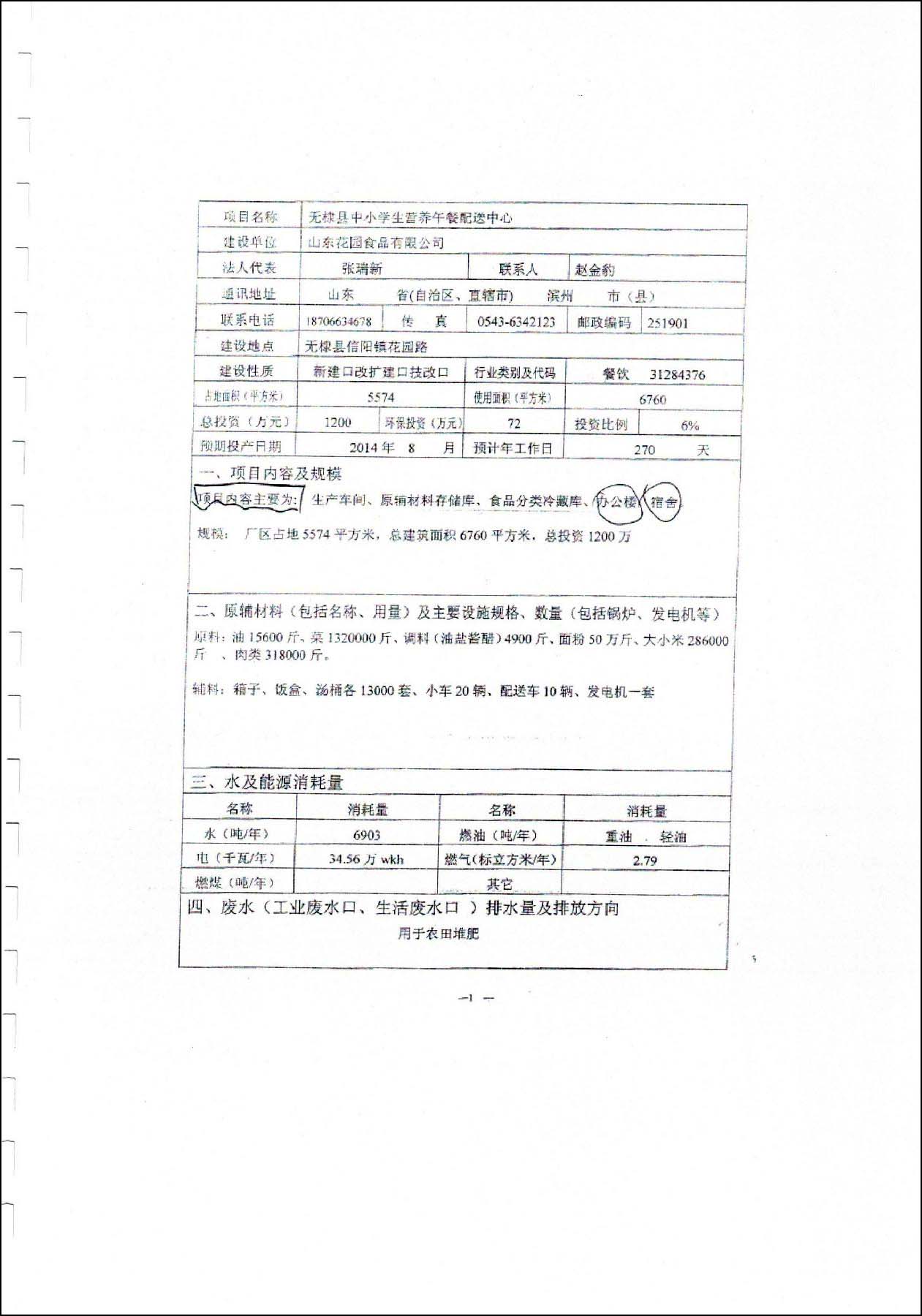 无棣县中小学生营养午餐配送中心项目(一期工程)竣工环境保护验收意见